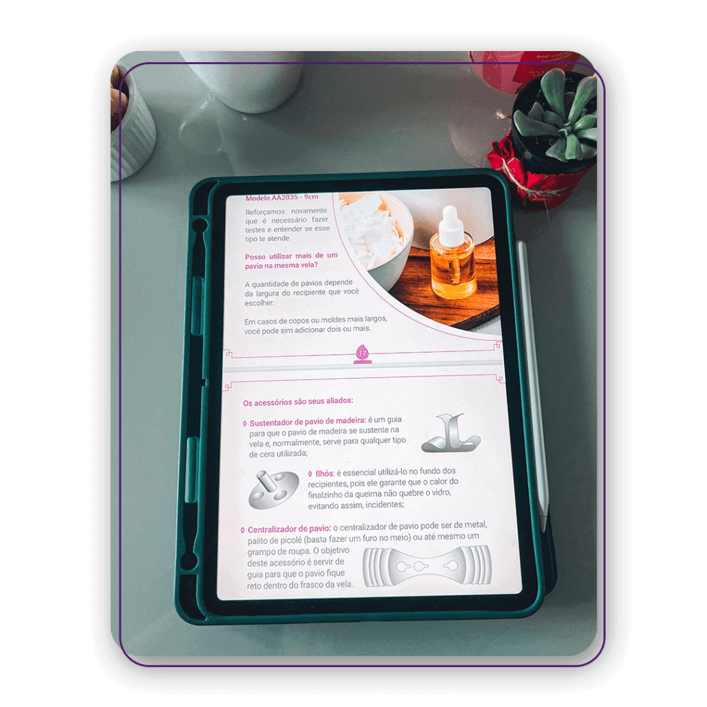 Tenha acesso a 30 receitas para oferecer uma variedade de aromas e designs únicos, que encantarão seus clientes e amigos e aumentarão seu ticket médio ao ofertar combos especiais com velas aromáticas.
